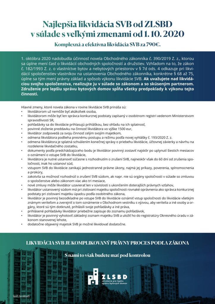 Novinky v likvidáciách SVB po 1. októbri 2020